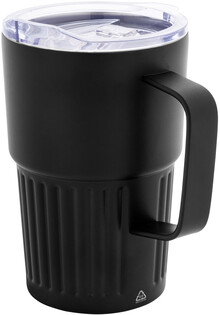 Dvoustěnný termo hrnek z recyklované nerezové oceli s víčkem na pití z ABS plastu. 470 ml.