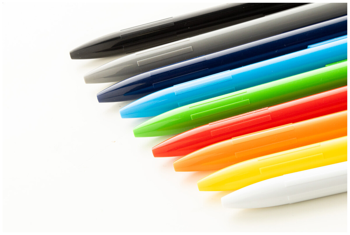 Kuličkové pero z recyklovaného ABS plastu s modrou náplní.