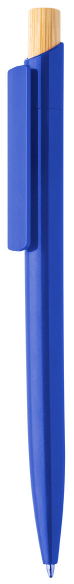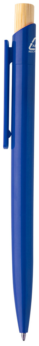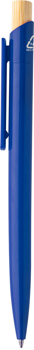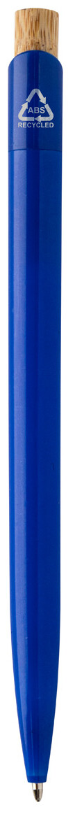 Kuličkové pero z recyklovaného ABS plastu s bambusovým tlačítkem. S modrou náplní.