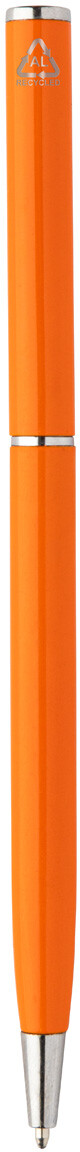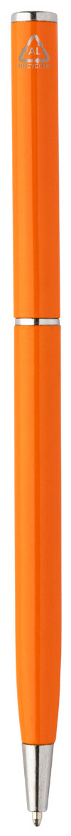 Kuličkové pero z recyklovaného hliníku s chromovanými částmi. S modrou náplní.