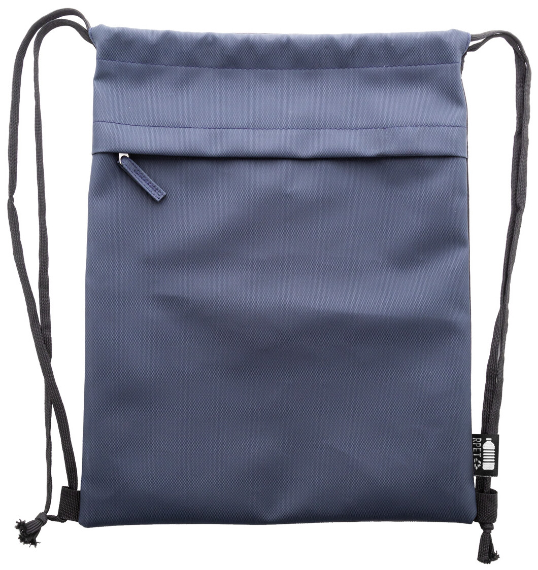 RPET vak se stahovací šňůrkou,s přední stranou potaženou PU a přední kapsou na zip. Polyester 600D RPET potažený PU s výrazným štítkem RPET.