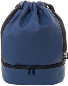 Prémiový vak se stahovací šňůrkou z RPET s přihrádkou na boty na zip, bočními vložkami ze síťoviny a širokými popruhy. Polyester 600D RPET potažený PU s výrazným štítkem RPET.