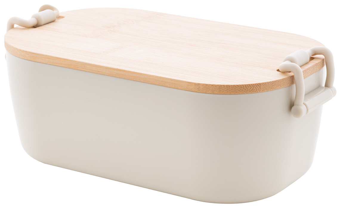 Box na jídlo z PP plastu s bambusovým víkem a uzávěrem na přezku, 1000 ml.