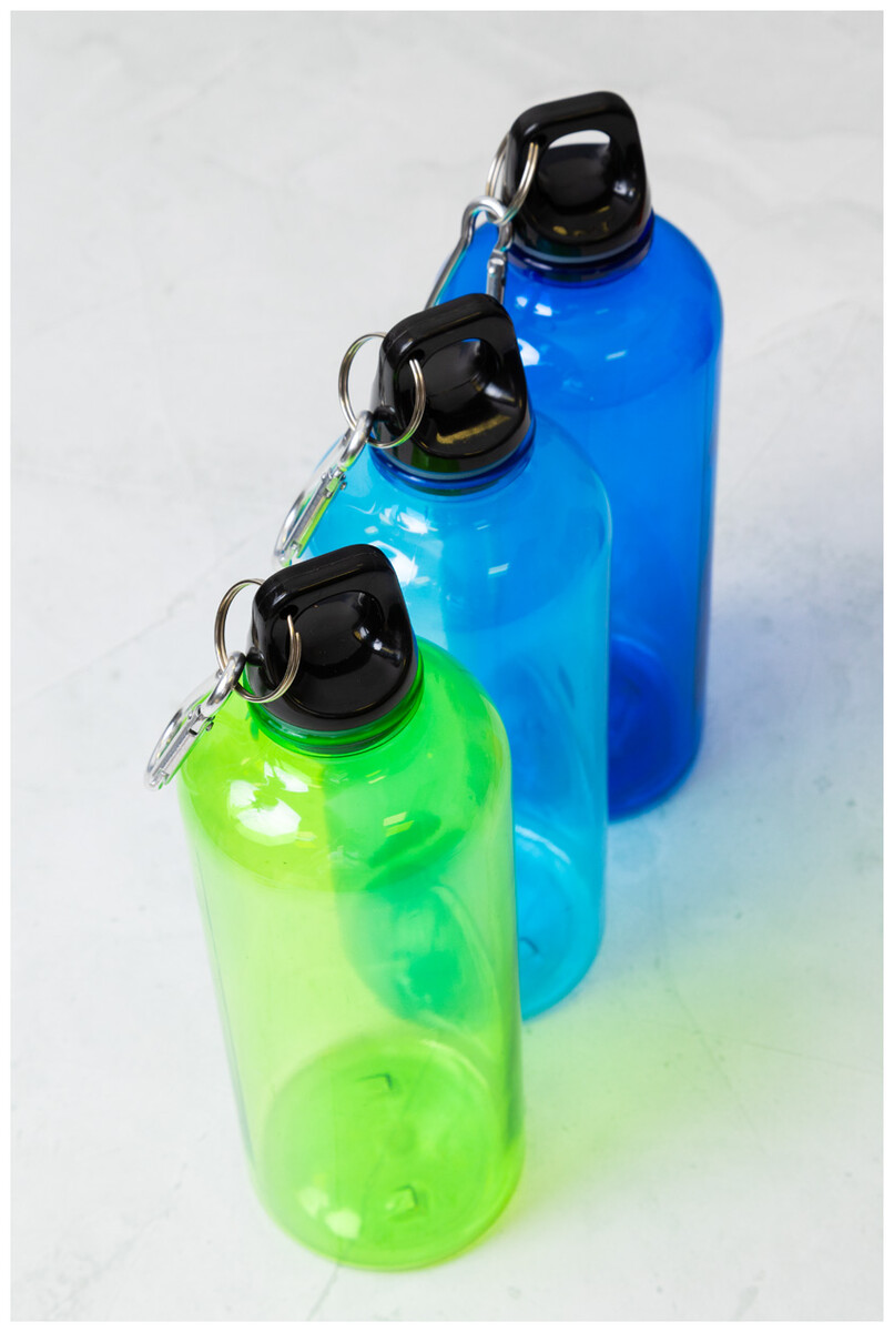 RPET láhev s hliníkovou karabinou, 600 ml. Bez BPA. Nevhodné pro sycené nápoje.