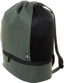 Prémiový vak se stahovací šňůrkou z RPET s přihrádkou na boty na zip, bočními vložkami ze síťoviny a širokými popruhy. Polyester 600D RPET potažený PU s výrazným štítkem RPET.