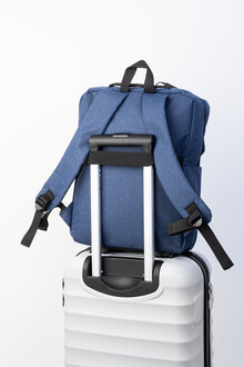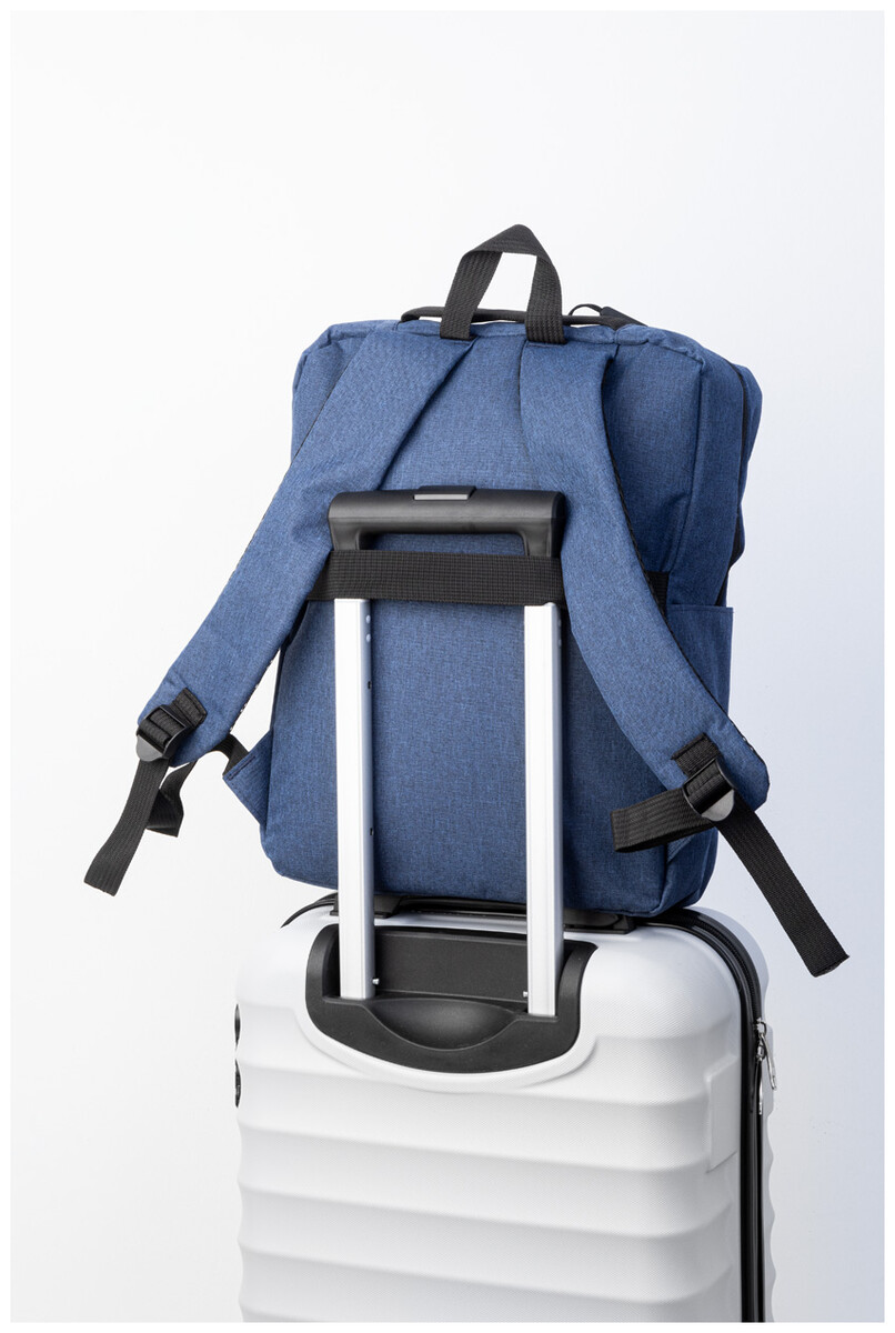 Batoh RPET s hlavním oddílem na zip, 2 kapsami na zip, boční kapsou a polstrovanou přihrádkou na notebook (15"). S popruhem na vozík, polstrovanými zády a ramenními popruhy. Polyester 600D RPET, s výrazným štítkem RPET.