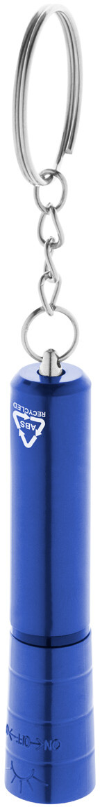 Mini baterka s 1 LED, z recyklovaného ABS plastu s kovovým povrchem a kovovým kroužkem na klíče. S knoflíkovou baterií.