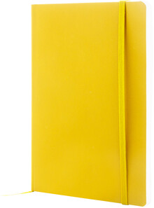 Blok A5 z recyklované PU kůže s měkkou vazbou s 80 linkovanými listy z recyklovaného papíru. Se záložkou v odpovídající barvě a gumičkou.