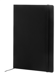 Blok A5 z recyklované PU kůže s měkkou vazbou s 80 linkovanými listy z recyklovaného papíru. Se záložkou v odpovídající barvě a gumičkou.