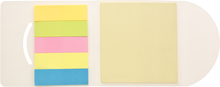 FOSFO - Lepicí bloček 75x75mm a 5 barev lepicích papírků 50x15 v bílém uzavíratelném papírovém obalu.