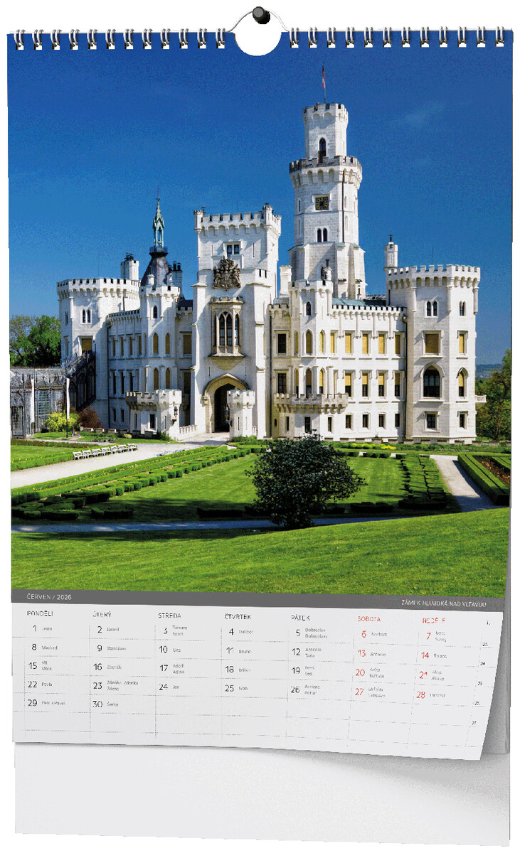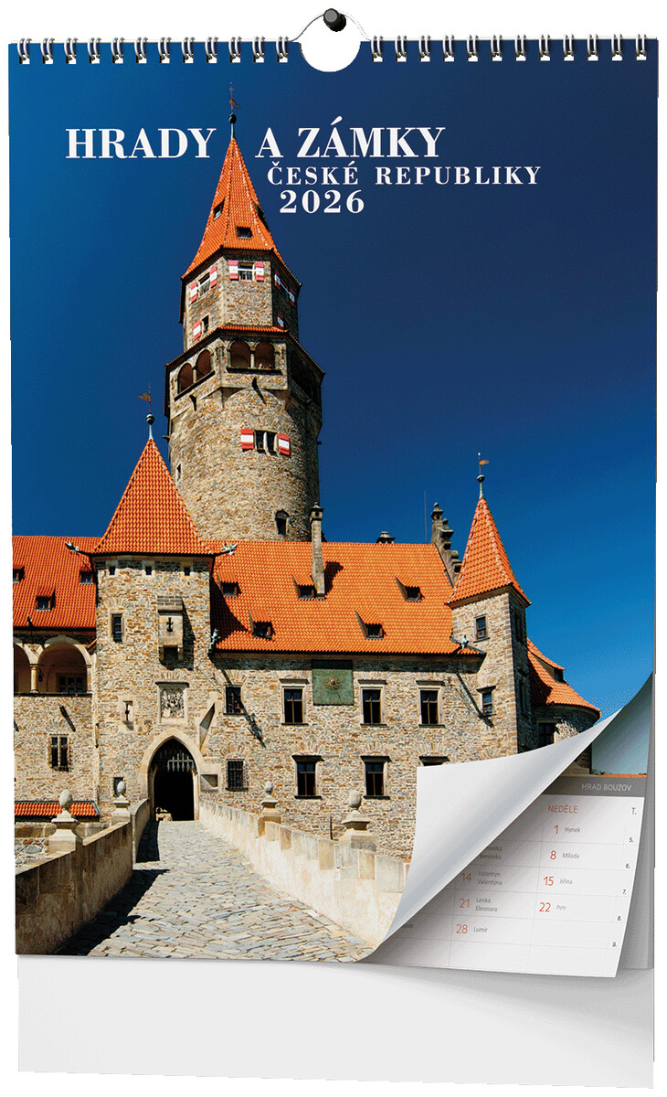 Nástěnný kalendář s obrázky hradů a zámků naší země.