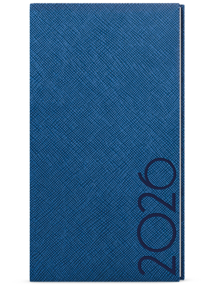 Kapesní týdenní diář v modré barvě se strukturovaným povrchem. Moderní doplněk do každé kapsy. Diář má velký prostor pro poznámky a plánování.