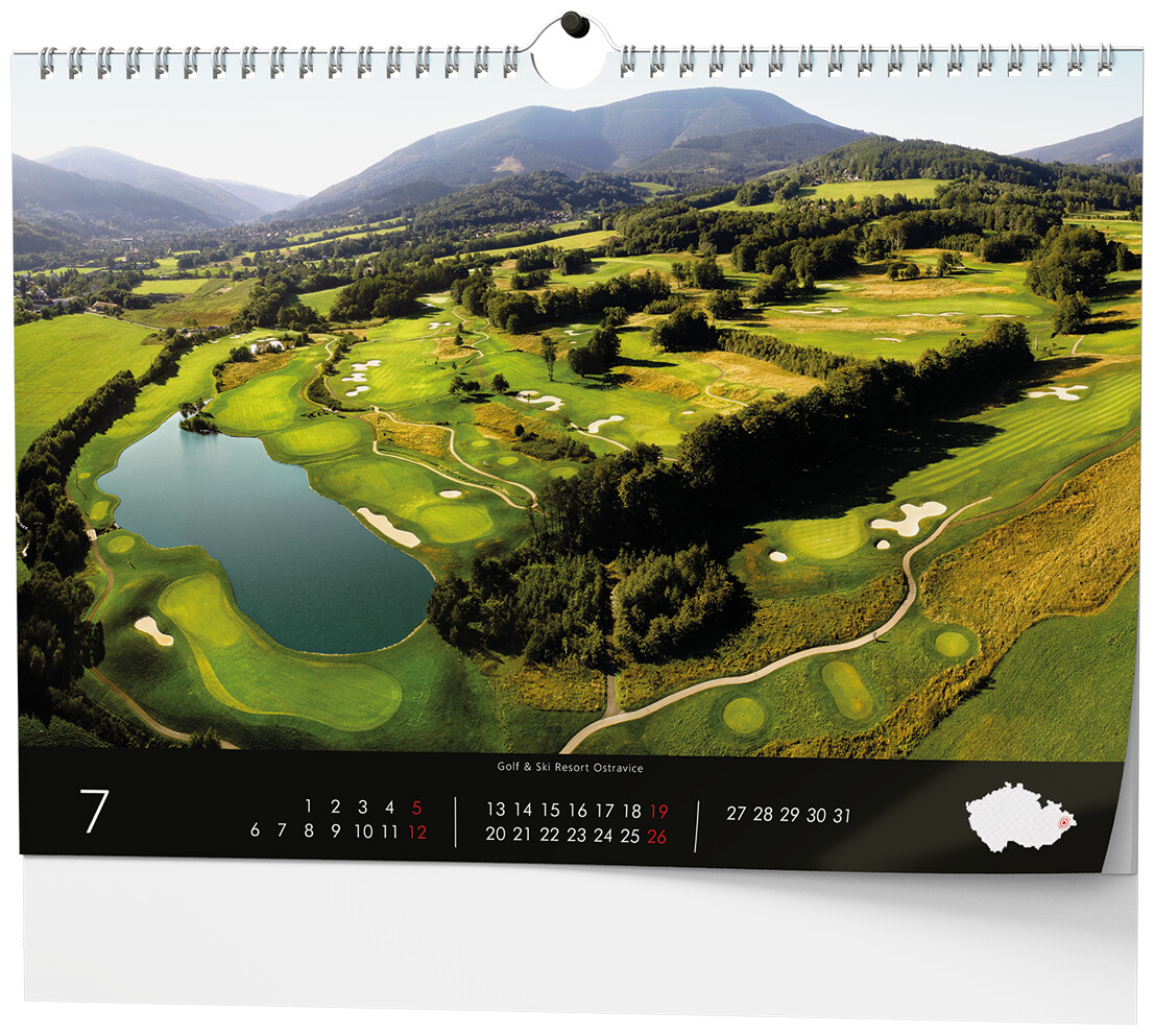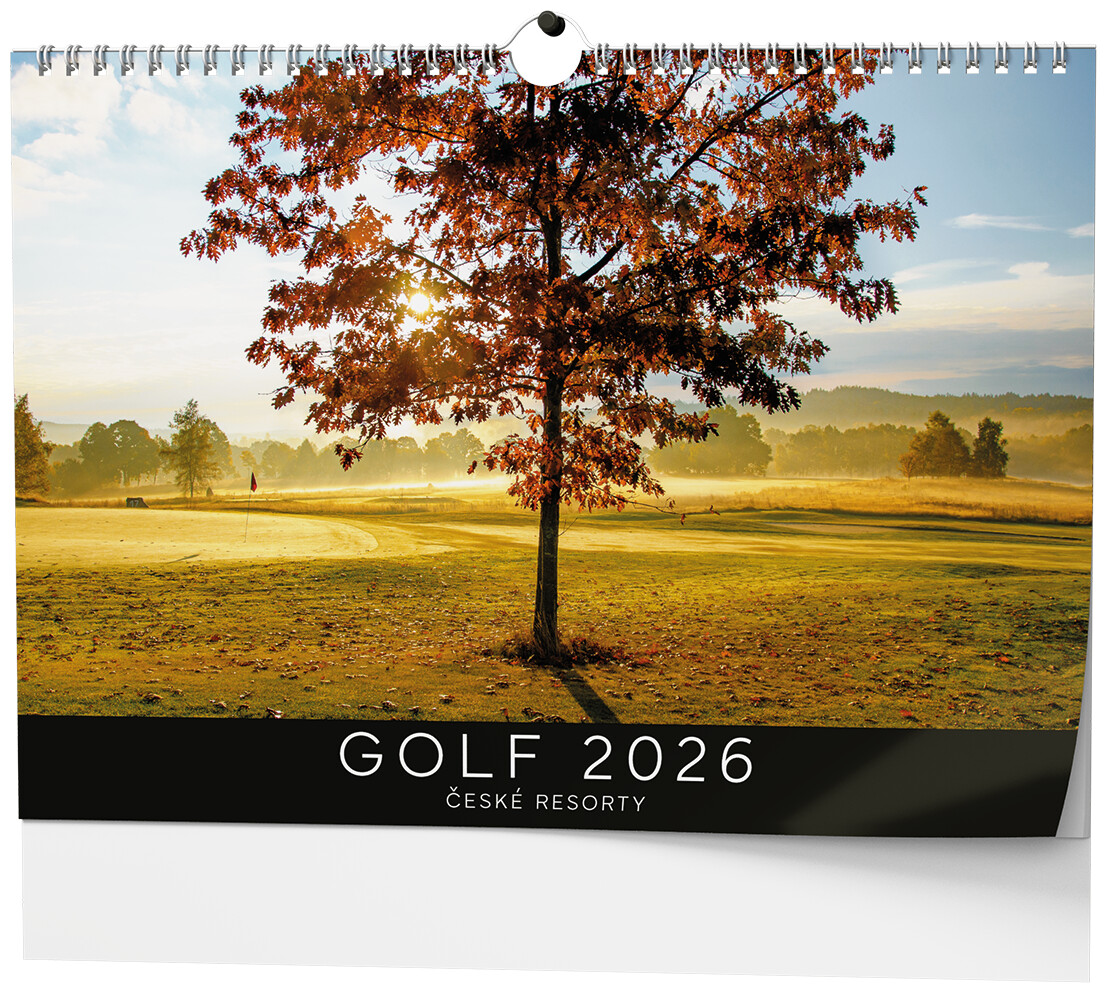 Nástěnný kalendář s tématem golfu (české resorty).