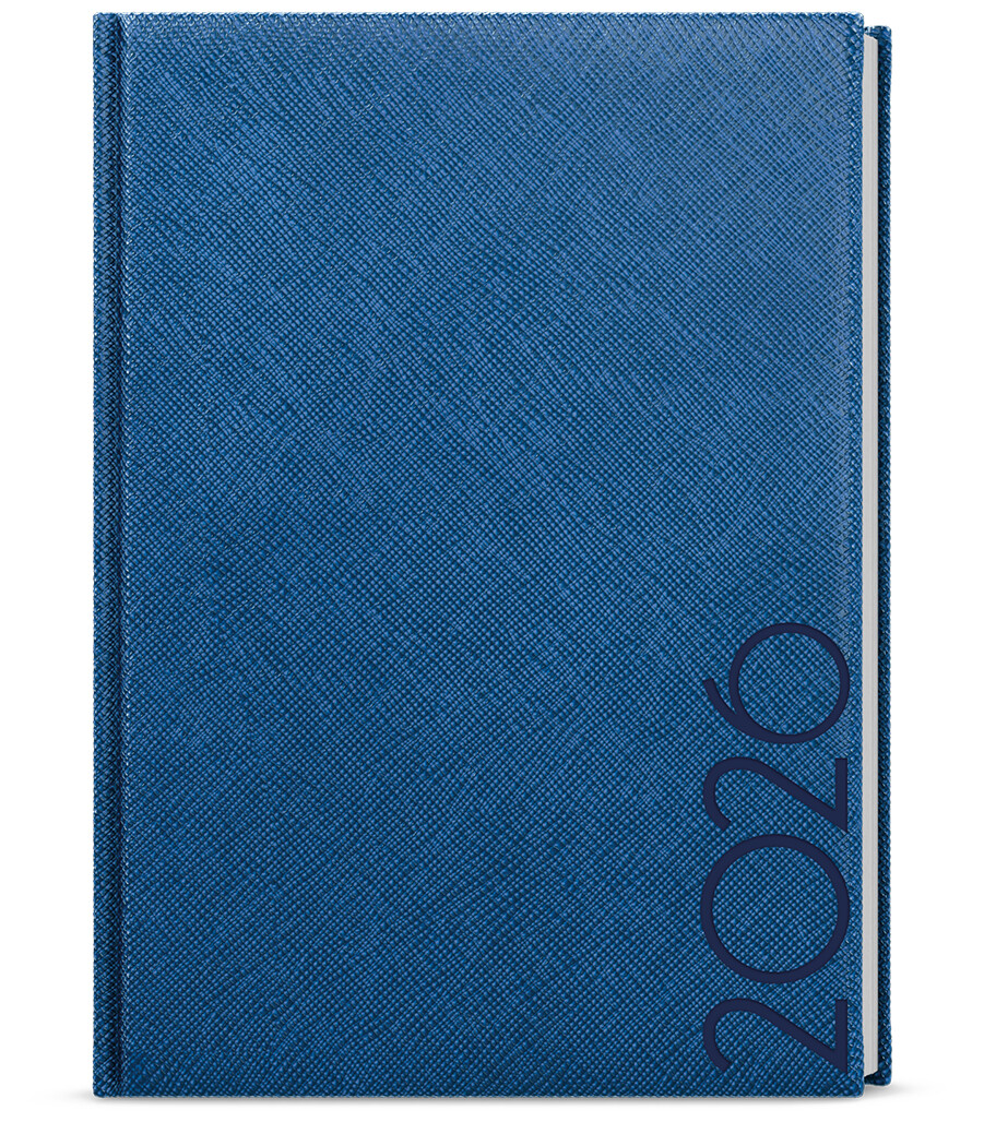Týdenní diář v modré barvě se strukturovaným povrchem. Moderní doplněk v oblíbeném formátu. Diář má velký prostor pro poznámky a plánování.