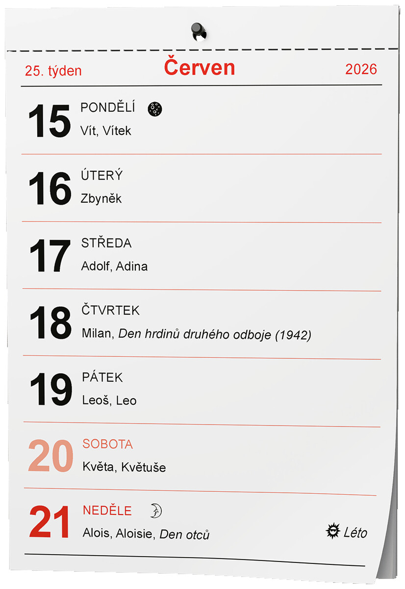 Trhací nástěnný kalendář s týdenním kalendáriem a většími písmeny a čísly ve formátu A5.