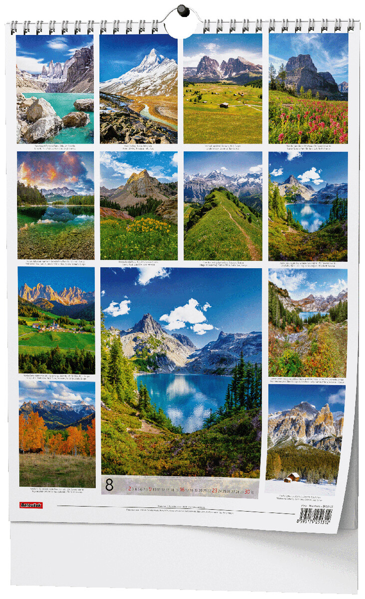 Nástěnný kalendář s obrázky známých hor z celého světa.