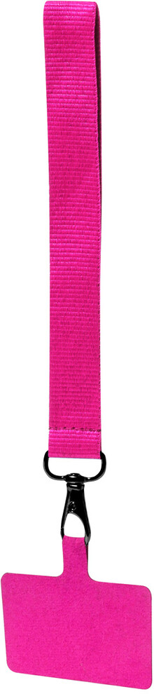 Polyesterový pásek na zápěstí, na mobil s vložkou na telefon a kovovou karabinou.