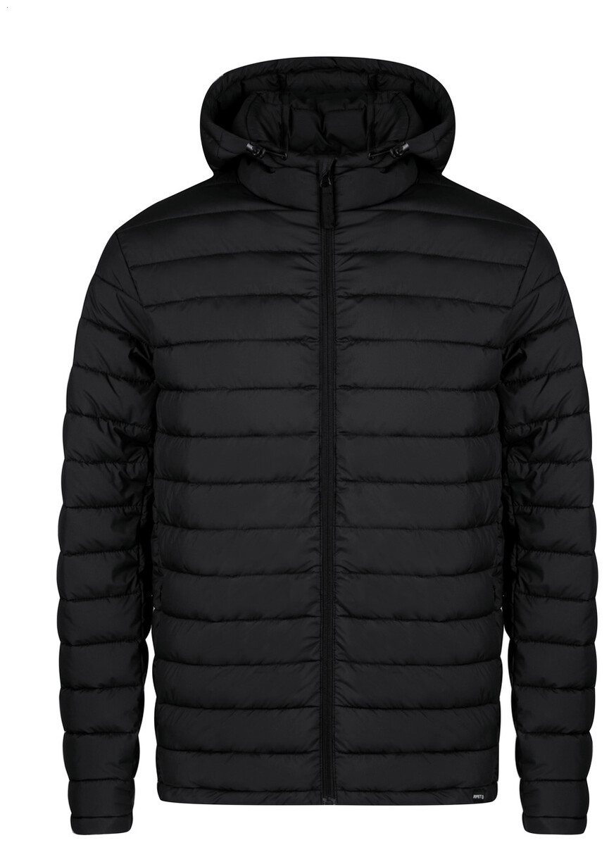 Větru a vodě odolná polstrovaná bunda na zip s bočními kapsami na zip a nastavitelnou kapucí. S polyesterovým pouzdrem RPET. 100% RPET polyester s výrazným štítkem RPET.
