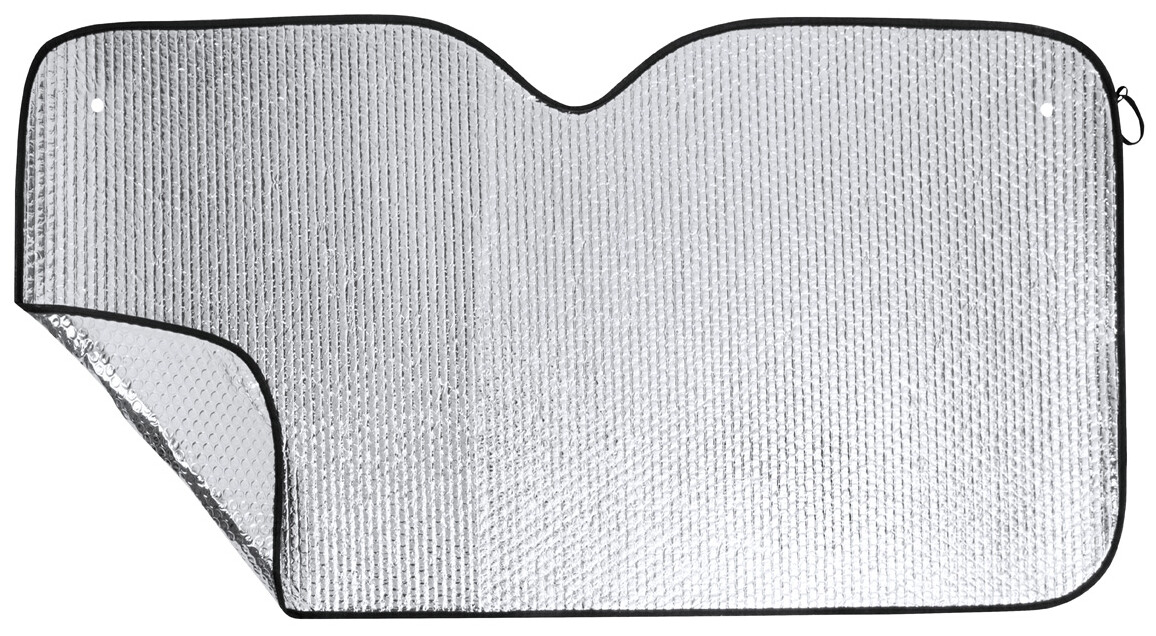 Hliníková sluneční clona na čelní sklo automobilu s pružnými pásky pro skládání. MOQ: násobky 100 ks.