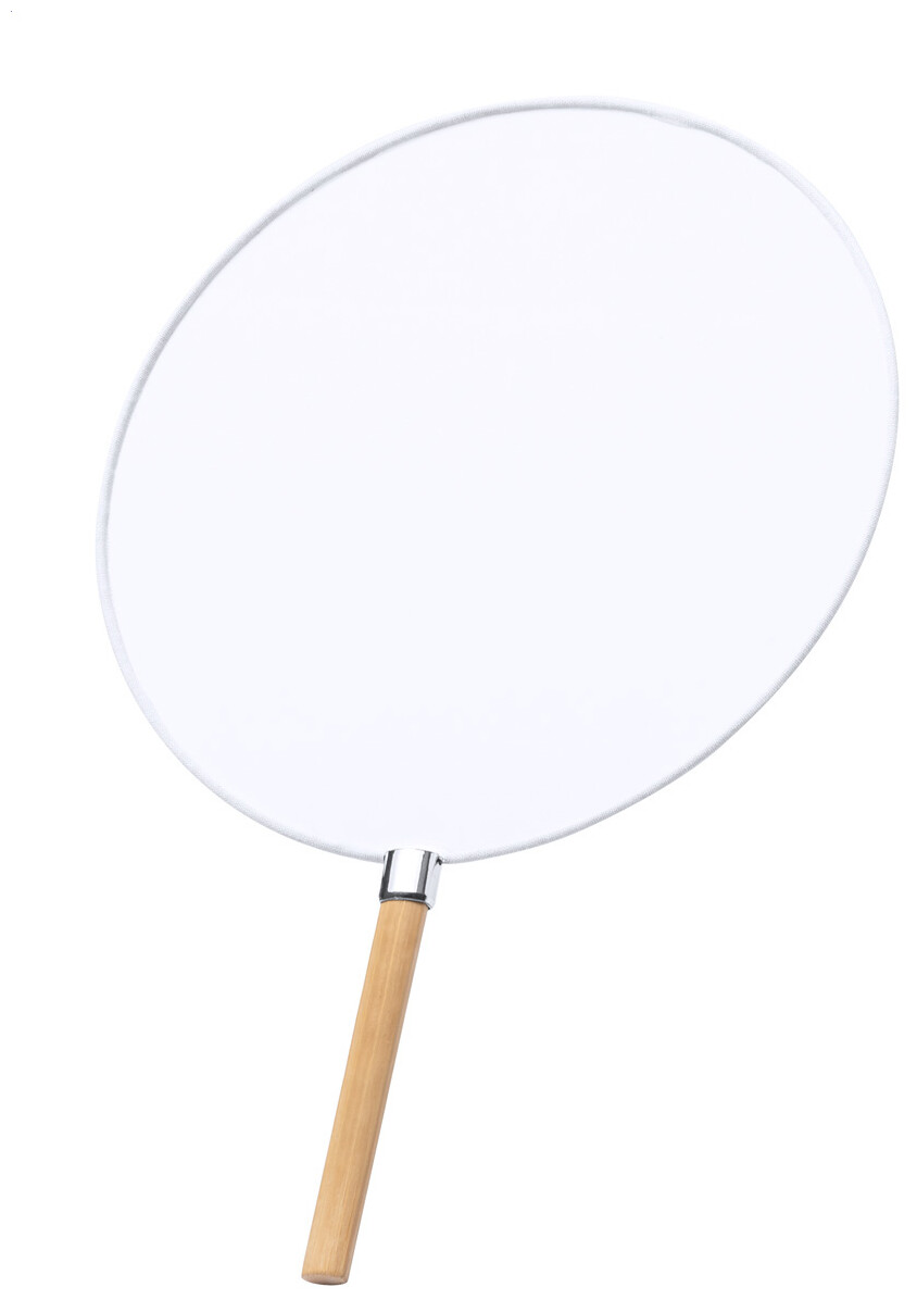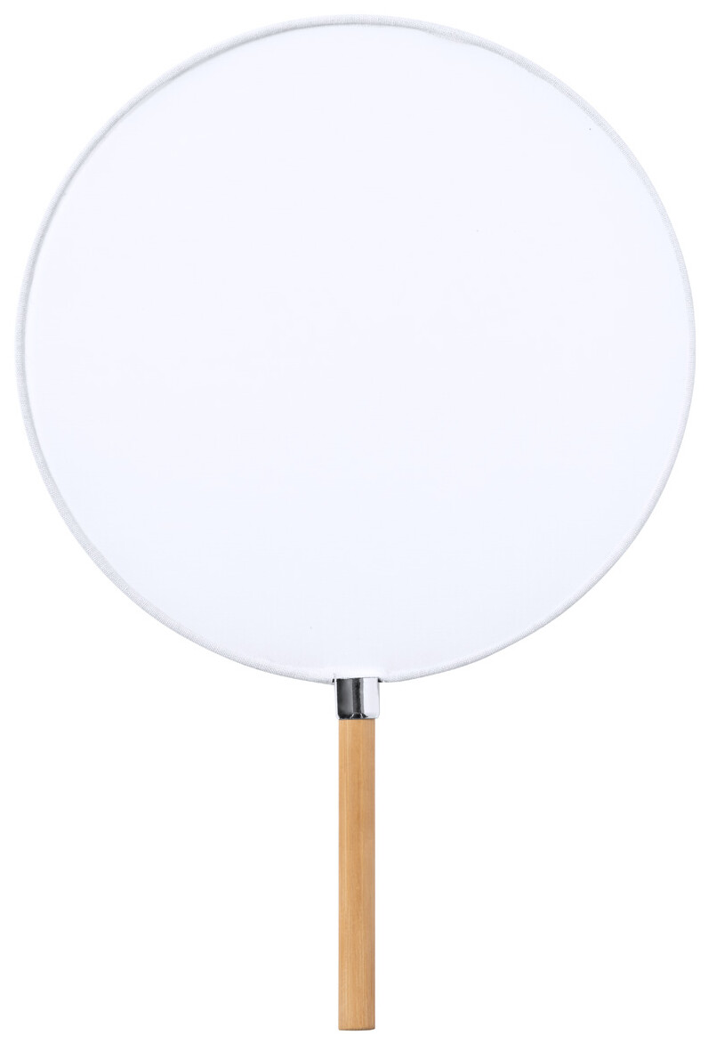 Polyesterový ruční ventilátor s bambusovou rukojetí.