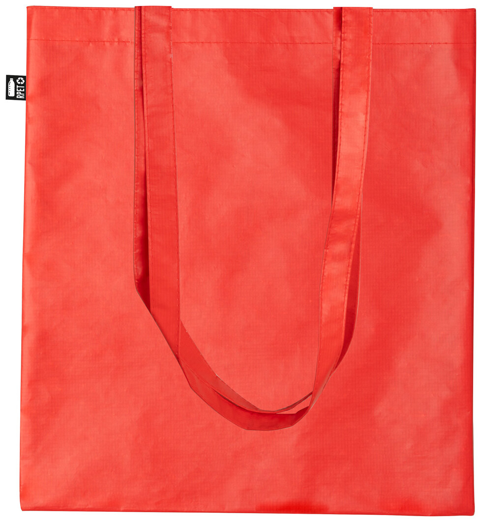 Polaminovaná recyklovaná RPET nákupní taška s dlouhými uchy, 105 g/m2, s etiketou s označením RPET.