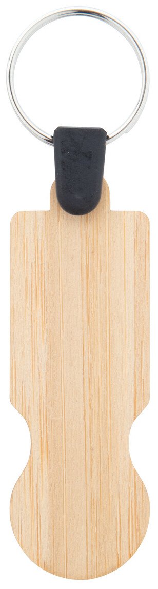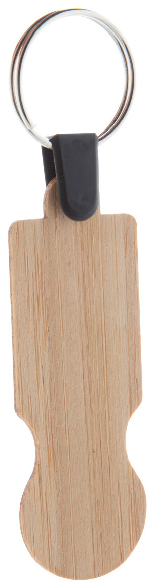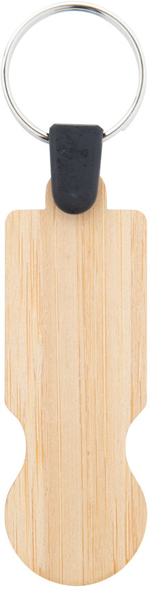 Přívěšek na klíče z bambusu s koncovkou do nákupních vozíků.