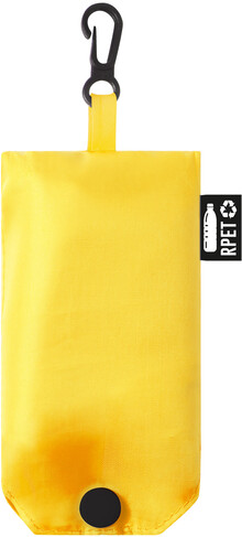 Skládací nákupní taška z RPET polyesteru, s etiketou s označením RPET.