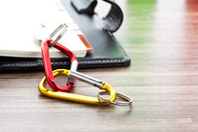Kovový přívěšek na klíče s hliníkovou karabinou.