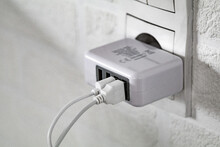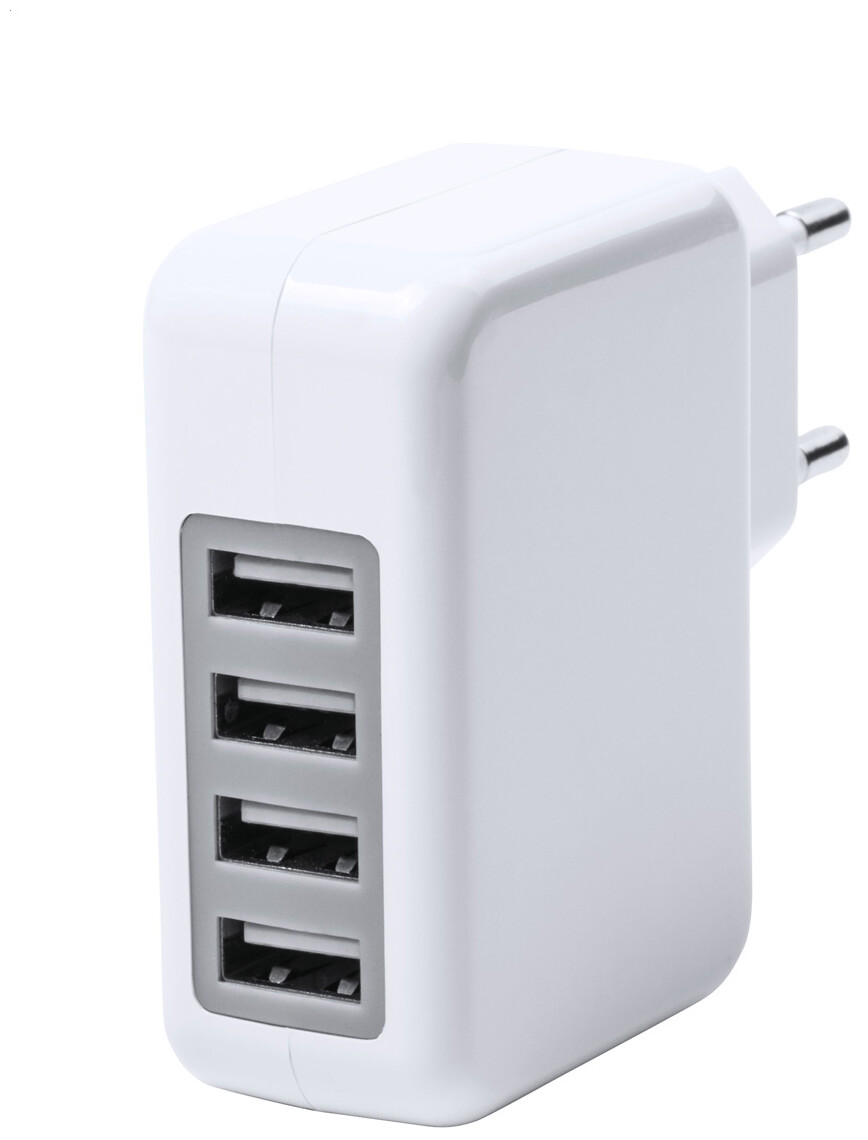 Plastová USB nabíječka do zásuvky se 4 porty. Max. výstup 3100 mA.