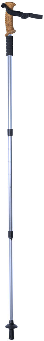 Teleskopická trekingová hůl na nordic walking s hliníkovým tělem, ergonomickou rukojetí z přírodního korku, poutkem na zápěstí a anti-shock systémem. S košíkem na sníh v přenosné tašce z netkané textilie.