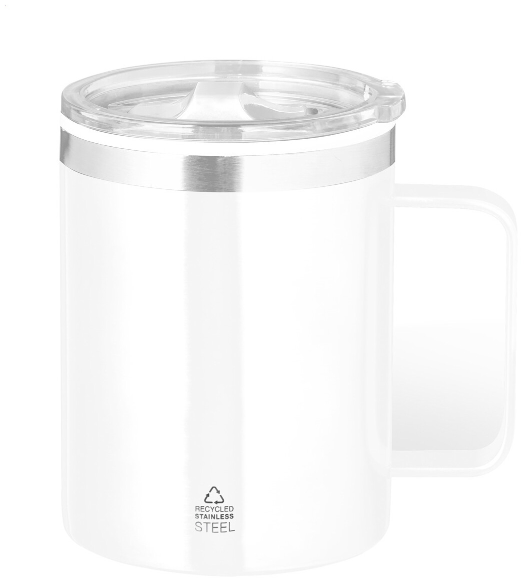 Dvoustěnný termo hrnek z recyklované nerezové oceli s víčkem na pití z plastu, 400 ml.