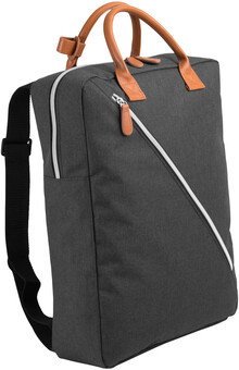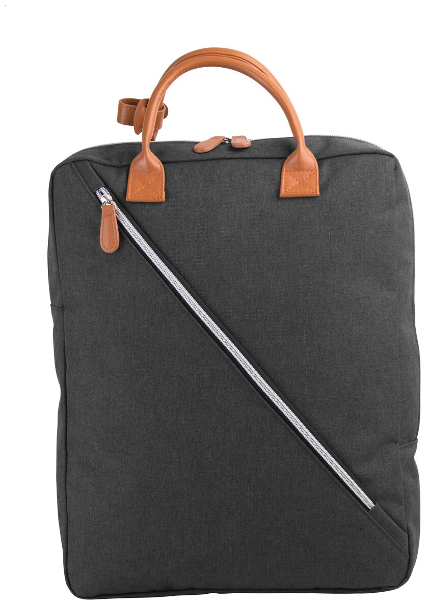 Batoh s přihrádkami na zip, vypolstrovanou kapsou na laptop, ucha z PU kůže a nastavitelný ramenní popruh. 300D polyester.