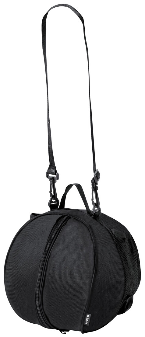Taška na míče se zipem z 600D RPET polyesteru se síťovanou kapsou na láhev a nastavitelným ramenním popruhem. Dodáváno bez míče.