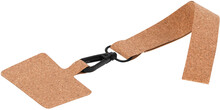 Pásek s držákem na na mobil z přírodního korku s vložkou na telefon a kovovou karabinou.