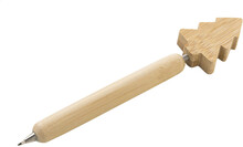 Bambusové kuličkové pero svánočním motivem nahoře. S modrou náplní.