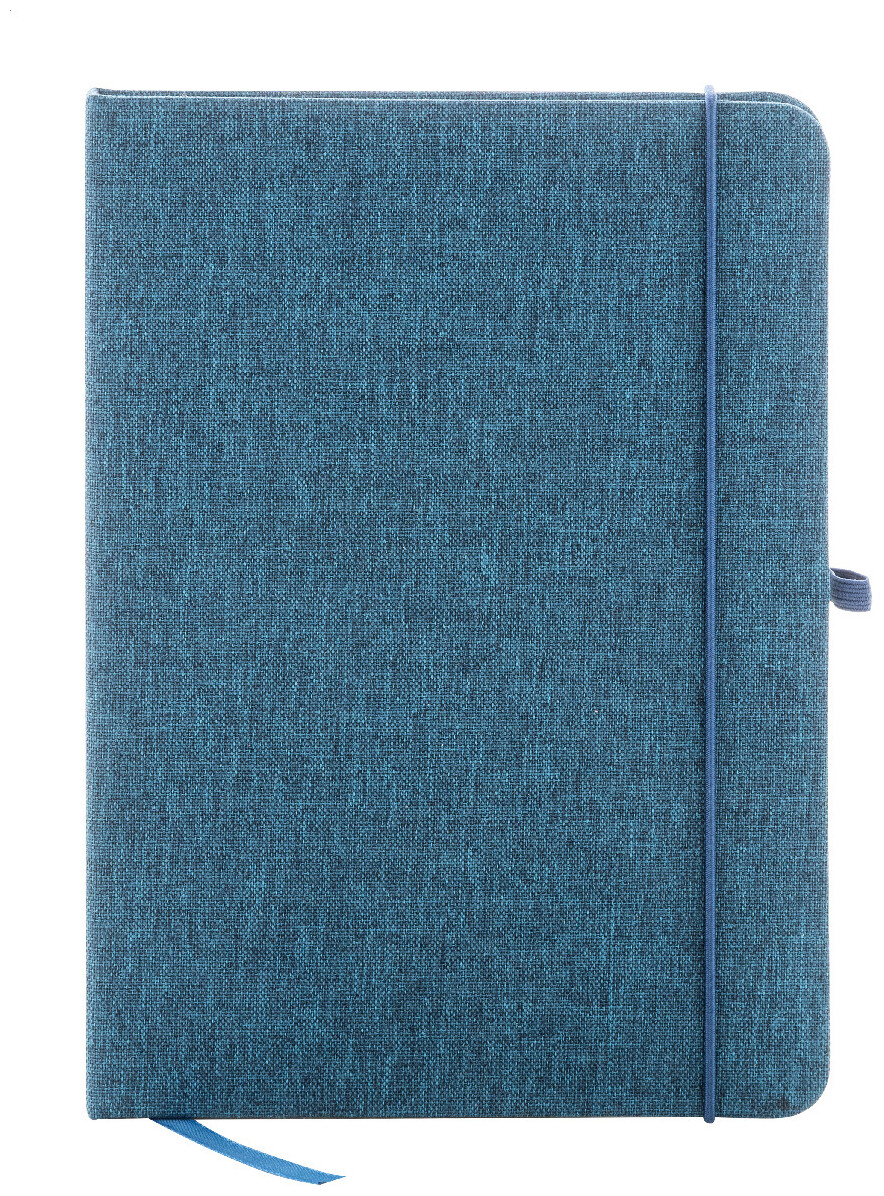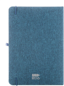 Blok A5 potažený polyesterem 300D RPET s 80 čistými listy. S gumovým páskem, záložkou a držákem na pero.