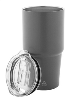 Dvoustěnný vakuově izolovaný termohrnek z recyklované nerezové oceli s víčkem z polystyrenového plastu. 600 ml.