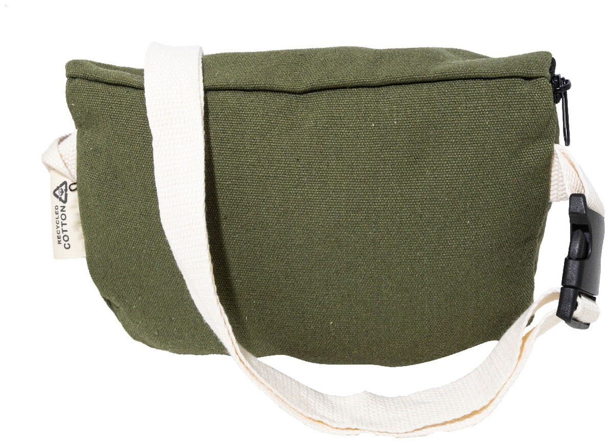 Ledvinka z recyklovaného plátna s přihrádkou na zip a nastavitelným popruhem. 70 % recyklované bavlny a 30 % recyklovaného polyesteru. S výraznou etiketou z recyklované bavlny.