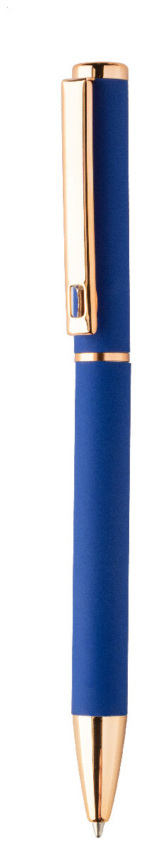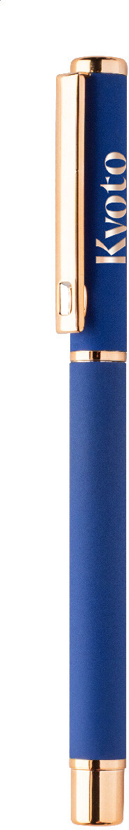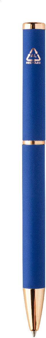 Sada per z recyklovaného hliníku s kuličkovým perem a rollerem s pogumovaným povrchem a detaily růžového zlata. S modrou náplní. Se speciálním povrchem pro zrcadlové laserové gravírování v růžovo-zlaté barvě. V černé papírové dárkové krabičce.