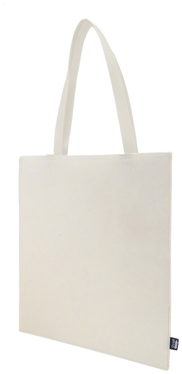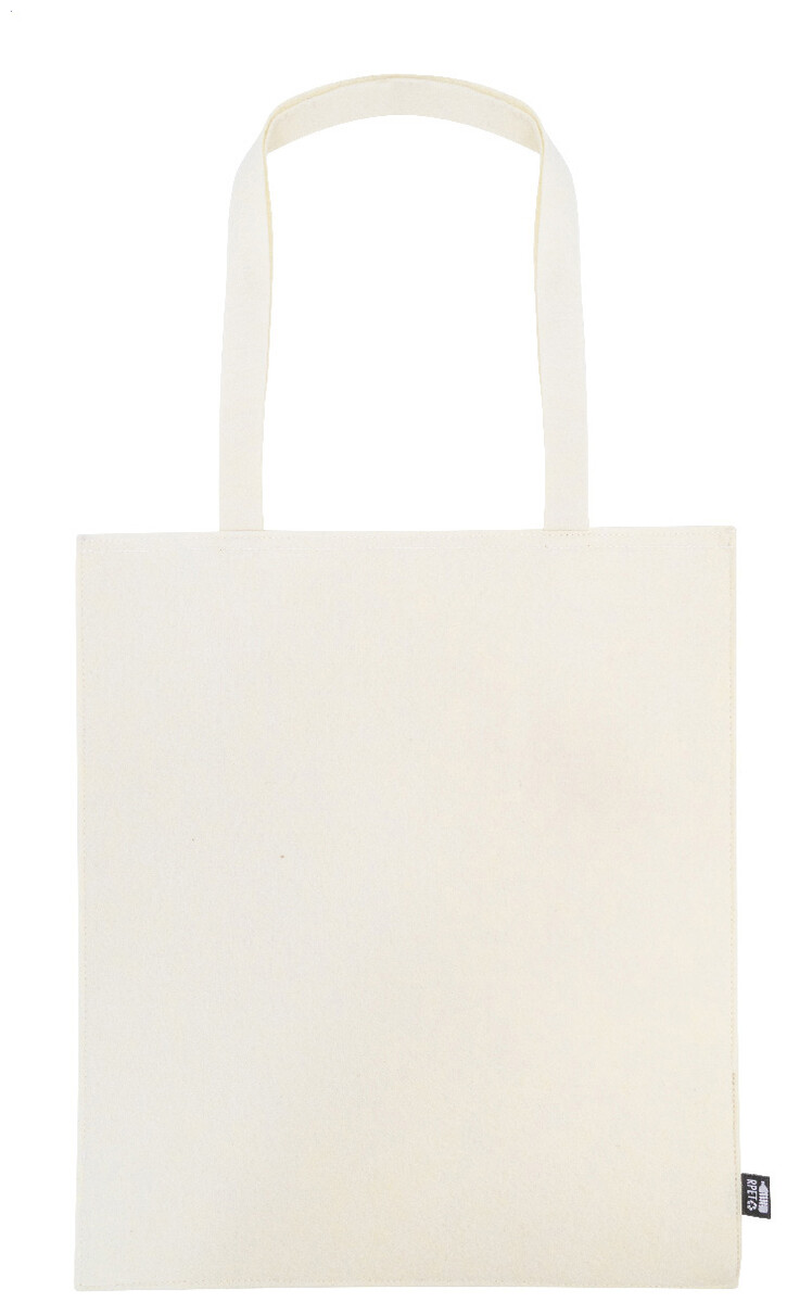 Nákupní taška z RPET plsti s dlouhými uchy. S výraznou etiketou z RPET.