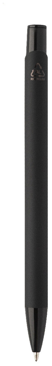 Kuličkové pero z recyklovaného hliníku s pogumovaným tělem a barevnými lesklými kovovými díly. Se speciálním povrchem pro zrcadlové gravírování, které odpovídá kovovým částem. S modrou náplní.