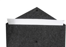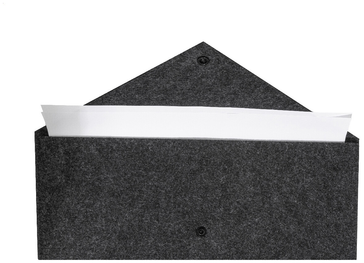 Taška na dokumenty nebo pouzdro na notebook z RPET plsti s knoflíkovým zapínáním. Vhodné pro notebooky do 13". S výrazným štítkem RPET.
