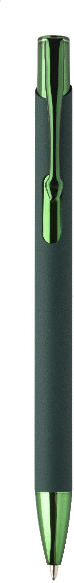 Kuličkové pero z recyklovaného hliníku s pogumovaným tělem a barevnými lesklými kovovými díly. Se speciálním povrchem pro zrcadlové gravírování, které odpovídá kovovým částem. S modrou náplní.