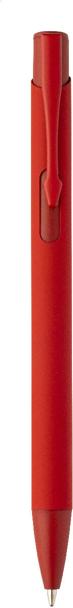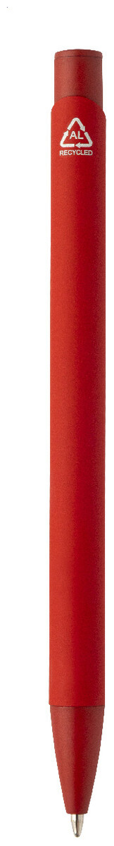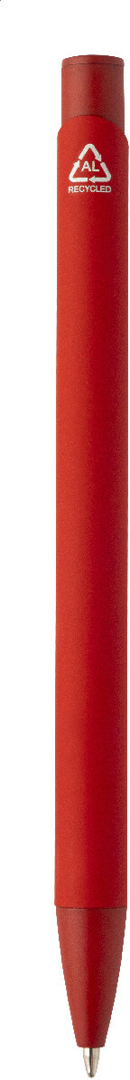 Kuličkové pero z recyklovaného hliníku s pogumovaným tělem a barevnými lesklými kovovými díly. Se speciálním povrchem pro zrcadlové gravírování, které odpovídá kovovým částem. S modrou náplní.