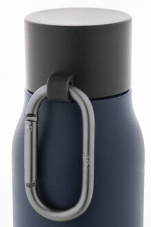 Dvoustěnná vakuová láhev z recyklované nerezové oceli s víčkem z PP a karabinou z recyklovaného hliníku. 500 ml.