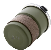 Jednostěnný cestovní hrnek z recyklované nerezové oceli s úchopem z ořechového dřeva, plastovým víčkem a brčkem z recyklované nerezové oceli. 260 ml.
