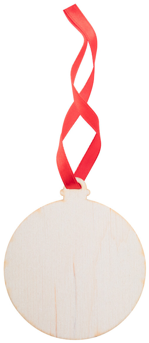 Vánoční ozdoba z březové překližky, dodáváno s oddělenou červenou stužkou.