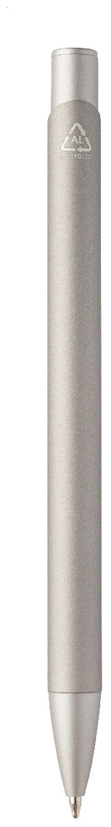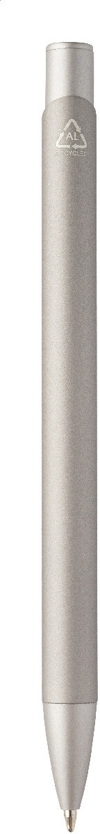 Kuličkové pero z recyklovaného hliníku s pogumovaným tělem a barevnými lesklými kovovými díly. Se speciálním povrchem pro zrcadlové gravírování, které odpovídá kovovým částem. S modrou náplní.
