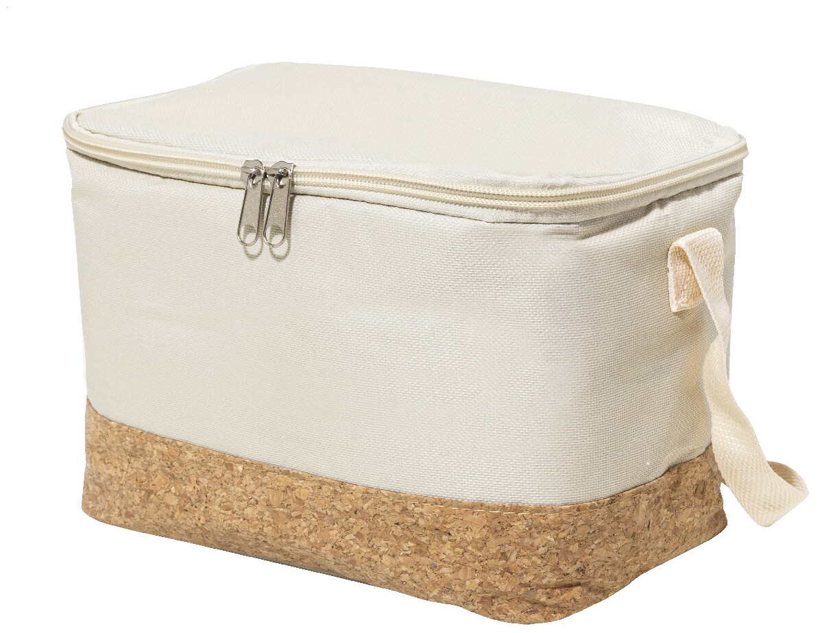 Chladicí taška na zip z 600D RPET polyesteru s přírodní korkovou základnou, PEVA polstrováním a nastavitelným ramenním popruhem. S výrazným štítkem RPET.