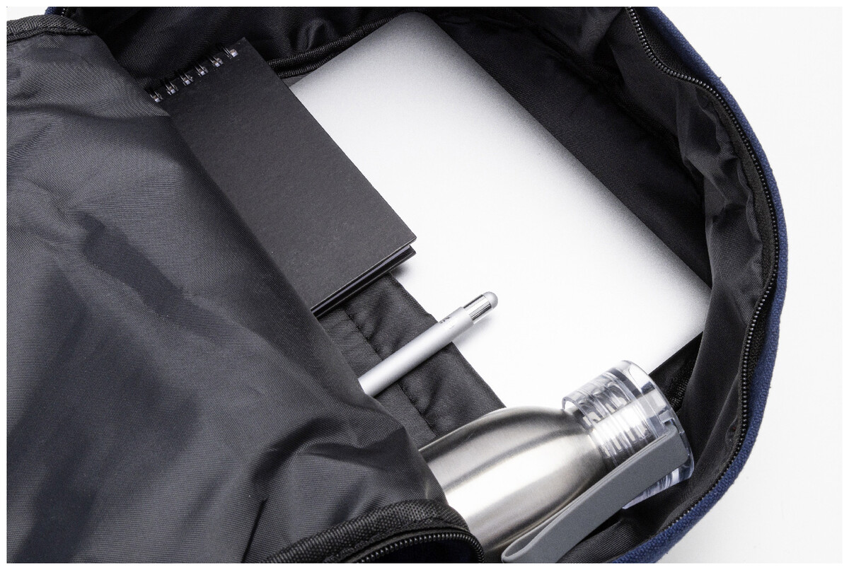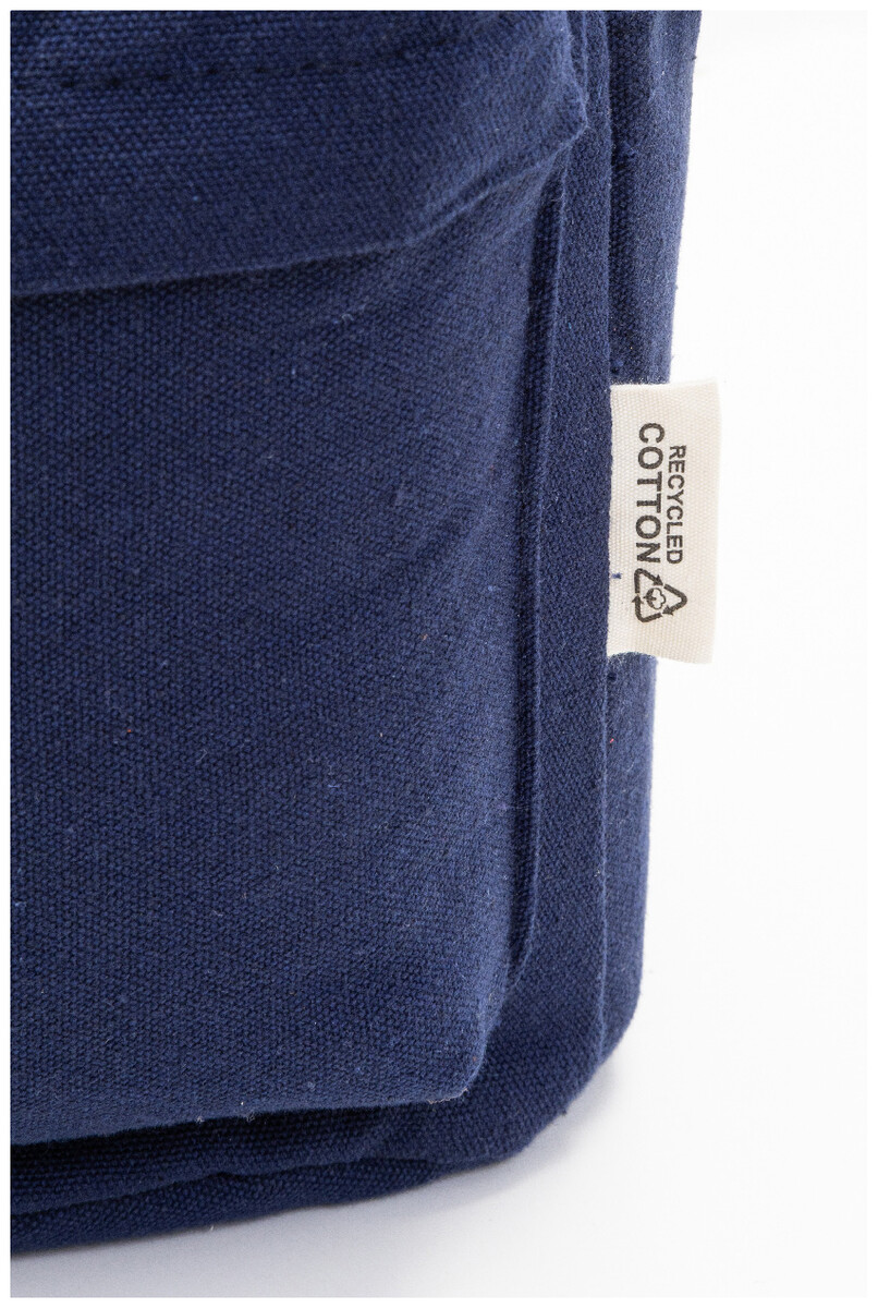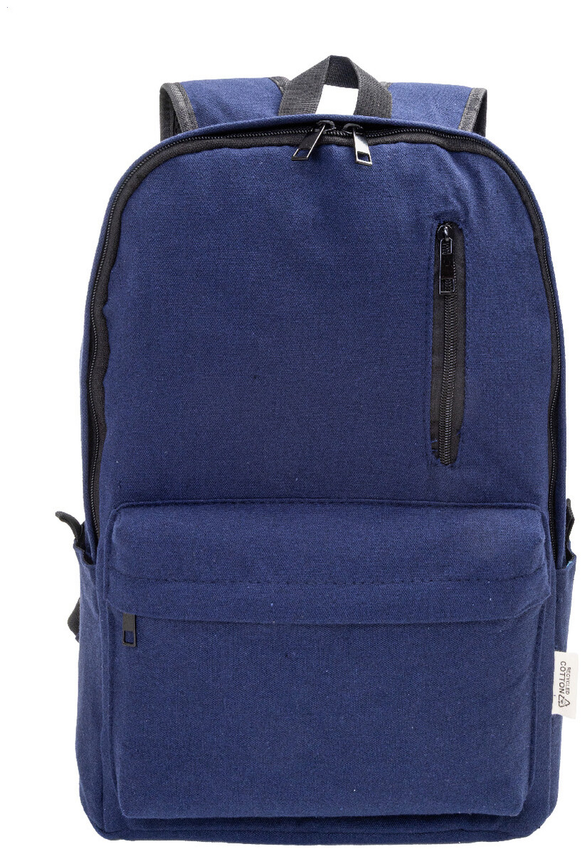 Recyklovaný plátěný batoh s hlavní přihrádkou na zip, polstrovanou přihrádkou na notebook (15"), 2 předními kapsami na zip, bočními kapsami, popruhem na kolečkách, polstrovanými zády a ramenními popruhy. 70% recyklované bavlny a 30% RPET polyesteru. S výrazným štítkem recyklované bavlny.